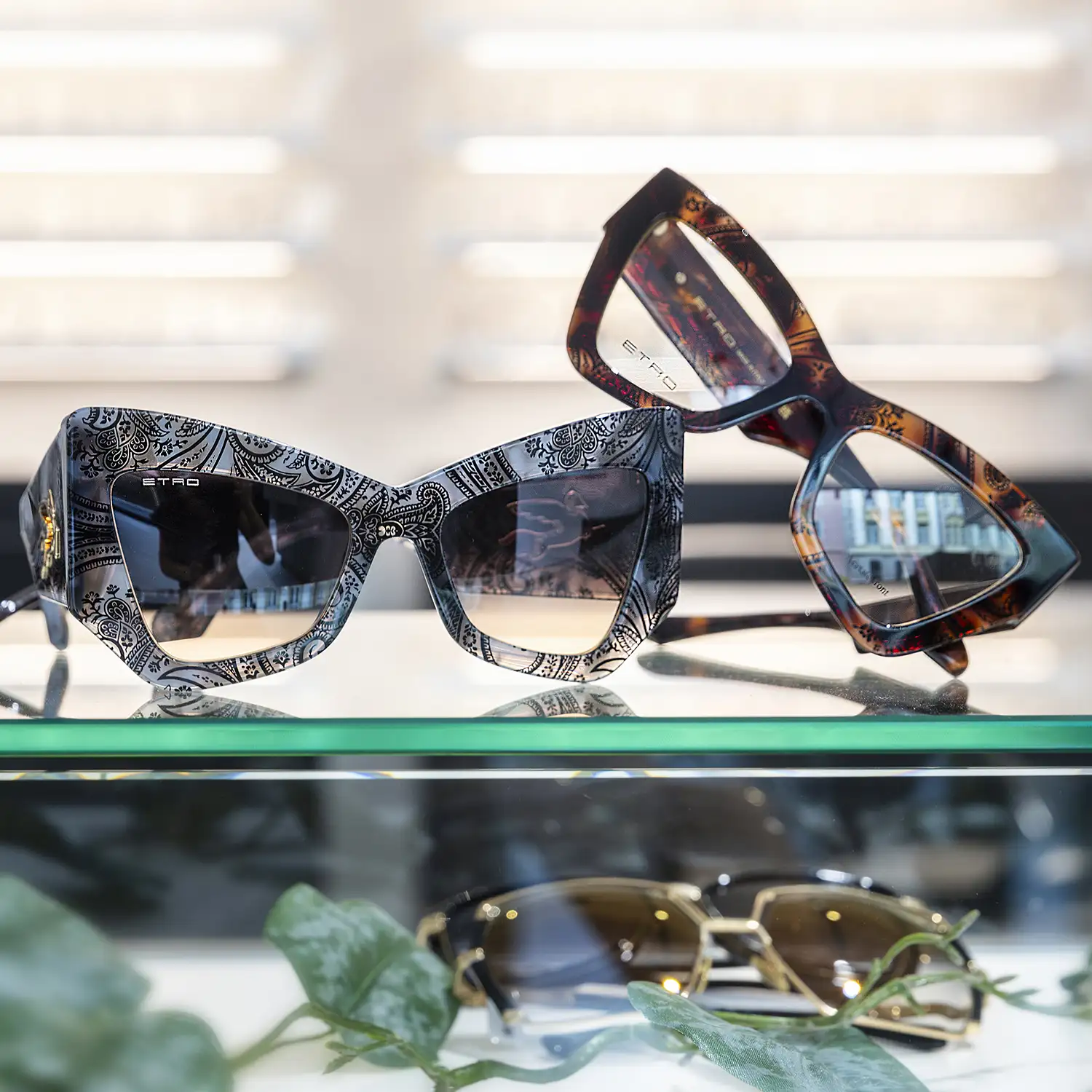 ETRO Brillen spiegeln die kreative Essenz der Marke wider, mit kunstvollen Mustern, lebendigen Farben und einem Hauch von Boho-Chic für einen stilvollen, individuellen Look.